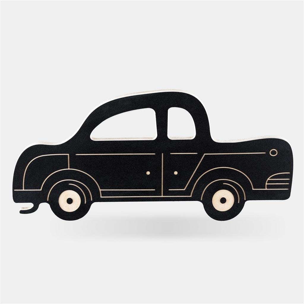Zgodnie ze średnim tempem rozwoju grafomotorycznego między 2,5 a 3 rokiem życia dziecko zaczyna kreślić linie, zygzaki, kreseczki. Później rozpoczyna rysować poziomo, pionowo, ukośnie, następnie rysuje półokręgi oraz wreszcie koło. W wieku 3 lat dziecko potrafi wykonywać koliste ruchy ręki, rysować krzyżyki, kółka, kwadraty – co stanowi podstawę przyszłego rysunku. Tabliczki z motywem retro samochodów zachęcają dzieci do rysowania. Samochód jest również świetną zabawką sam w sobie. Dzieci uwielbiają przedmioty w formie samochodów. Ponadto taka tablica wygląda bardzo ciekawie jako dekoracja wnętrza. Do każdej tabliczki dołączona jest kreda w czterech kolorach. Samochód z jednej strony jest pokryty farbą tablicową i posiada wygrawerowane elementy, z drugiej natomiast jest biały. Zabawka rekomendowana dla dzieci powyżej 3 roku życia. Wymiary około 31,0 x 16,0 x 1,0 cm. FSC®, CE, EN71, 3+