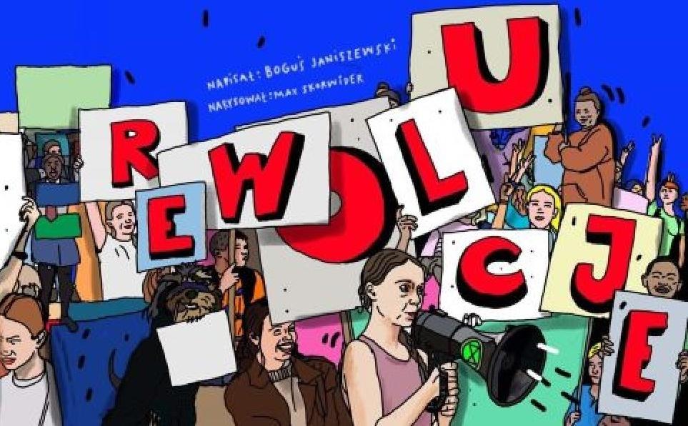 „Rewolucje” to kolejna po „Murach” książka twórczego duetu Bogusia Janiszewskiego i Maxa Skorwidera wydana nakładem wydawnictwa ALBUS. Książka w prosty i żartobliwy sposób opowiada o złożonych i ważnych zmianach w naszej historii i ich konsekwencjach. Jest próbą odpowiedzi na pytanie dlaczego nasz świat wygląda tak jak wygląda. Jeżeli jesteś ciekawy świata i zainteresowany tym w jaki sposób dokonywały się najważniejsze zmiany w naszej historii, ta książka jest właśnie dla ciebie bez względu na to ile masz lat! Autor książki opisał ponad dwadzieścia rewolucji wśród których znalazły się: rewolucje krwawe i bezkrwawe zarówno te, które skończyły się sukcesem i zmieniły świat na lepszy jak również te, które lepiej żeby nigdy się nie wydarzyły. W książce znalazła się rewolucja wywołana wirusem SARS-COV-2, która obecnie trwa, i której skutki boleśnie odczuwa cały świat. Autor przedstawił również zasługi kilku rewolucjonistów, którzy mieli odwagę myśleć inaczej i działać wbrew utartym normom. Ten rewolucyjny temat, w którym mieszają się fakty historyczne, ważne postaci, daty i miejsca został złagodzony żartobliwym prostym językiem oraz poczuciem humoru autora. Pomiędzy rewolucją społeczną, naukową, technologiczną, filozoficzną, czy kulturalną odnajdziemy rewolucję hormonalną i żołądkową Każda rewolucja została opatrzona metryczką zawierającą informacje: kiedy miała miejsce, jaki był jej zakres i konsekwencje. Książkę wzbogacają niebanalne ilustracje Maxa Skorwidera, które opowiadają o ludzkiej cywilizacji tworząc dynamiczną, drapieżną, bogatą w konteksty, a jednocześnie spójną z tekstem opowieść graficzną.