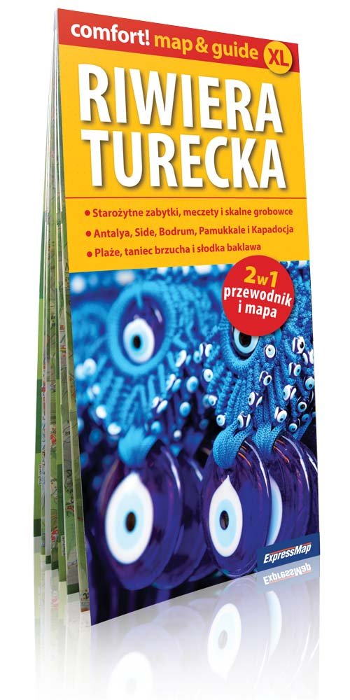 Riwiera Turecka • Starożytne zabytki, meczety, skalne grobowce • Antalya, Side, Bodrum, Pamukkale i Kapadocja • Plaże, taniec brzucha i słodka baklawa Od starożytnych świątyń, przez wykute w skałach grobowce licyjskie, po seldżuckie i osmańskie meczety. Słodkie lenistwo na piaszczystych plażach, kąpiele błotne w Sultaniye oraz spacer po śnieżnobiałych tarasach w Pamukkale. Spływ kanionem Köprülü i ekscytujący lot balonem nad Kapadocją. W nadmorskich kurortach: Izmirze, Bodrum, Kuşadasi, Antalyi i Alanyi oraz ich okolicach każdy znajdzie coś dla siebie. Comfort! map&guide XL „Riwiera Turecka” pomoże odkryć uroki tej części kraju. To wyjątkowe połączenie mapy i przewodnika zawiera wszystkie informacje niezbędne zarówno na krótki wyjazd, jak i dłuższe wakacje. Map&guide w nowej odsłonie – większy format i jeszcze więcej treści: • zajmujące opisy kilkudziesięciu niezwykłych miejsc wartych odwiedzenia, • łatwa nawigacja: atrakcje z przewodnika ponumerowane i zaznaczone na mapach, • poręczny format, wygoda składania i trwałość, • mapy w dogodnych dla turysty skalach: Riwiera Turecka (1:1 000 000), plany Izmiru (1:15 000), Kuşadasi (1:15 000), Bodrum (1:16 000), Fethiye (1:15 000), Antalyi (1:15 000) i Alanyi (1:15 000), • przydatne informacje praktyczne: adresy, dni i godziny otwarcia obiektów, wskazówki dotyczące transportu i noclegów, • informacje o lokalnej kuchni, • ciekawostki i kolorowe fotografie.