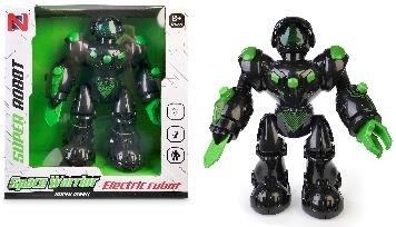 Funkcje: chodzi do przodu, wydaje odgłosy pocisków, 2 przyciski na ramionach odpowiadające za ruch chwytaka, efekty świetlne, Pozostałe informacje: wys. robota 18 cm, wym. opak. 22 x 20,5 x 8 cm, baterie 3 x aaa niedołączone, 3+