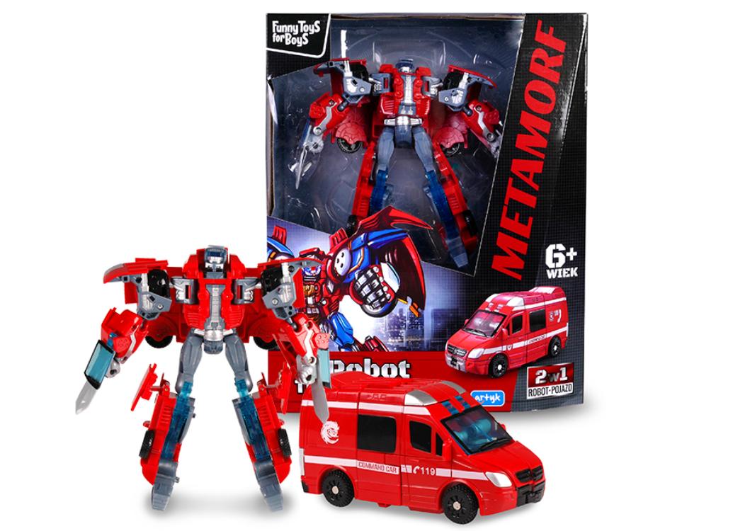 ROBOT / POJAZD 5 W 1 FUNKCJE: MOŻLIWOŚĆ PRZEKSZTAŁENIA ROBOTA W 4 MODELE POJAZDÓW W TYM W KARETKĘ,