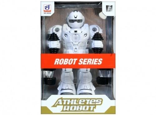 Robot Mega Creative to niesamowita zabawa dla dzieci. Miej w posiadaniu swojego własnego robota siłacza! Robot porusza się chodzi do przodu i do tyłu, robi pompki, podnosi sztangę, rusza rękami, świecą się lampki w miejscu ozów oraz na ramionach i brzuchu. Do robota dołączono dodatkowe dwie sztangi. Produkt wykonany z plastiku. Przeznaczony dla dzieci od lat 3. Wymaga zasilania bateriami 3xLR6. Wymiary opakowania (dł.x wys.x gł.) [cm] 21X31X14