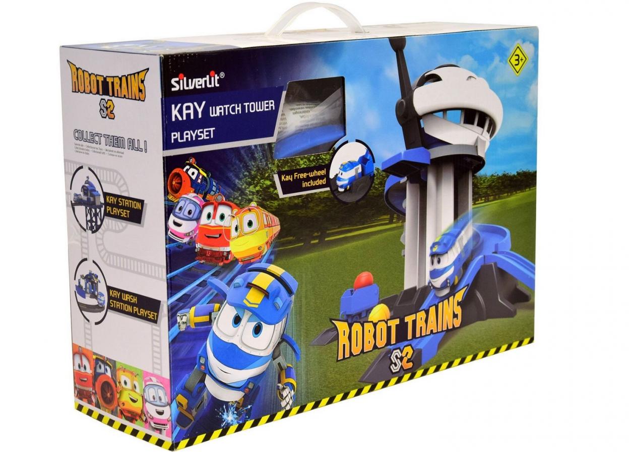 Wieża kontroli ruchu to najważniejsze miejsce, w którym planowane są trasy i nadzorowany jest ruch pociagów. W wieży znajdziesz rondo, które obraca się o 360, manualnie podnoszoną windę i zjeżdżalnię. Wieżę można łączyć z innymi zestawami Myjnia i Stacja, tworząc jeden duży węzeł komunikacyjny. Zestaw zawiera jeden pojazd i jeden wagonik.