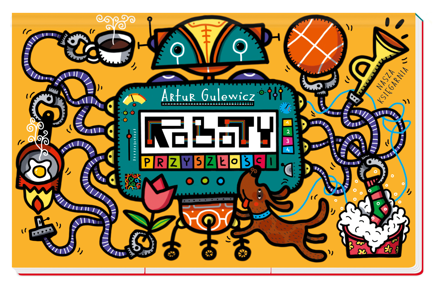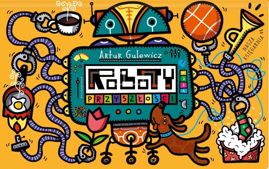W niedalekiej przyszłości istnieje wiele robotów, które pomagają ludziom w wykonywaniu codziennych czynności – wyprowadzają psa, przygotowują śniadanie, piorą, sprzątają mieszkanie, potrafią pięknie grać na instrumentach, pielęgnować ogród, są trenerami gry w koszykówkę, naprawiają samochody. Pewnego dnia na skutek uderzenia pioruna rozsypują się wszystkie części robotów w fabryce. Czy pomożesz odnaleźć pasujące do siebie fragmenty Psomata, Kurzoprecza, Olewatora i innych maszyn? Dzięki podzielonym na trzy części ilustracjom możesz tworzyć wiele własnych wersji robotów przyszłości i doskonale się przy tym bawić. Artur Gulewicz urodził się w 1978 roku. Absolwent łódzkiej ASP. Od ponad dwunastu lat zajmuje się ilustrowaniem i projektowaniem książek. Zaczynał od projektowania podręczników, a dziś skupia się głównie na ilustrowaniu książek dla dzieci, gdyż jak sam mówi, to sprawia mu największą radość i w tym może dać upust wyobraźni. Tworząc ilustracje, miesza różne style. Łączy pastele z akwarelami i zdjęciami, dążąc do uzyskania jak najciekawszego efektu. Współpracuje z czołówką polskich wydawnictw, a także wykonuje projekty dla UNICEF-u.