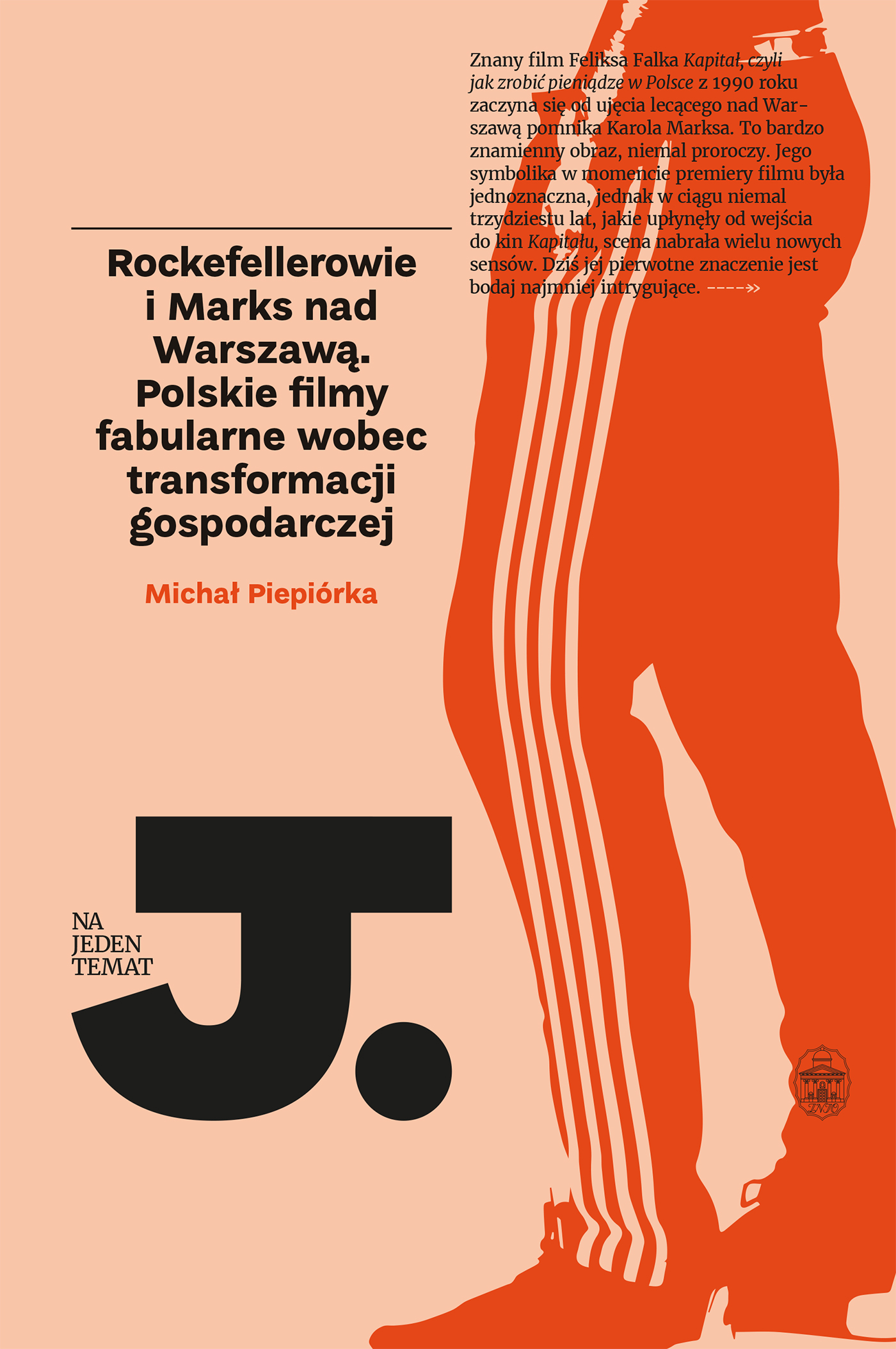 Znany film Feliksa Falka „Kapitał, czyli jak zrobić pieniądze w Polsce” z 1990 roku zaczyna się od ujęcia lecącego na Warszawą pomnika Karola Marksa. To bardzo znamienny obraz, niemal proroczy. Jego symbolika w momencie premiery filmu była jednoznaczna, jednak w ciągu niemal trzydziestu lat, jakie upłynęły od wejścia do kin „Kapitału…”, scena nabrała wielu nowych sensów. Dziś jej pierwotne znaczenie jest bodaj najmniej intrygujące. Okres po 1989 roku to w Polsce czas gwałtownych przemian, wielkich nadziei, frustracji, rozczarowań, kolejnych kryzysów, ale również sukcesów. Przejście z gospodarki centralnie sterowanej do wolnorynkowej stanowiło przez lata ważny kontekst dla twórców polskiego kina – zarówno tych, którzy opowiadali o świecie biznesu, polityki czy służb, jak i tych koncentrujących się na życiu codziennym zwykłych ludzi. Michał Piepiórka śledzi zmiany w kulturowych narracjach, które objawiają się w filmach podejmujących temat transformacji gospodarczej. Analizuje zarówno fabuły uznane, jak i popadające w zapomnienie ofiary tzw. filmoznawczej rzeźni. Często to właśnie te drugie mówią nam o Polsce, także dzisiejszej, rzeczy nowe i zaskakujące. „Porzucenie tego, co wyjątkowe, bo jednostkowe i rozumiane jako «autorskie», przynosi tę korzyść, że pozwala na polskie kino spojrzeć nieco szerzej, jak na pewną całość, która posiada charakterystyczne dla siebie cechy, dominujące narracje, jedne wartości premiuje, a krytykuje inne”. (fragment) „Dokumentowana przez polskie kino mentalność zmieniała się bardzo na przestrzeni ćwierćwiecza. Rozczarowanie niedostatkami wolnego rynku ustąpiło miejsca empatycznemu współodczuwaniu z tymi, których kapitalistyczna machina wyrzuciła na margines”. (fragment) Michał Piepiórka (1987) – kulturoznawca, krytyk filmowy; doktor nauk humanistycznych. Zajmuje się filmem dokumentalnym we współczesnej kulturze audiowizualnej, przemianami w kinie współczesnym oraz filmowymi interpretacjami polskiej transformacji gospodarczej. Jako krytyk filmowy publikował m.in. w „Kinie”, „Panoptikum”, „Kulturze Liberalnej”, „Czasie Kultury”, „Magazynie Filmowym SFP” oraz w serwisach internetowych Stopklatka i Filmweb. Wyróżniony w konkursie portalu Filmweb „Powiększenie” (2011) oraz w Konkursie o Nagrodę im. Krzysztofa Mętraka (w latach 2016, 2017 i 2018). Autor bloga filmowego „Bliżej Ekranu”, za prowadzenie którego otrzymał w 2017 roku nominację do Nagród Polskiego Instytutu Sztuki Filmowej. Urodził się w Gdańsku, mieszka w Poznaniu.