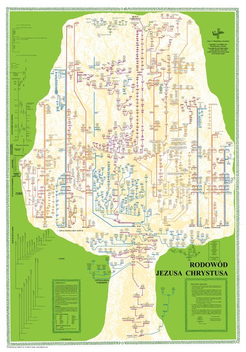 Plakat w szczegółowy sposób przedstawia rodowód Jezusa Chrystusa, począwszy od pierwszych ludzi, Adama i Ewy. Od podstawy pnia bezpośrednia linia prowadzi do patriarchów, Abrahama, Izaaka i Jakuba, następnie rozgałęzia się w dwanaście plemion. Dodatkowo, po lewej stronie drzewa genealogicznego, rozpostarta jest chronologia historyczna. Linia pozioma prowadzona od każdego punktu drzewa wskazuje odpowiadający temu punktowi moment historyczny na chronologii. Chronologia podaje także imiona ważnych w historii osób, które nie są wymieniane w źródłach, jako przynależące do któregoś z dwunastu plemion. Plakat sprzedawany jest w tubie zabezpieczającej go przed zniszczeniem w transporcie. Plakat będzie znakomitą pomocą na lekcjach religii, historii czy spotkaniach biblijnych.