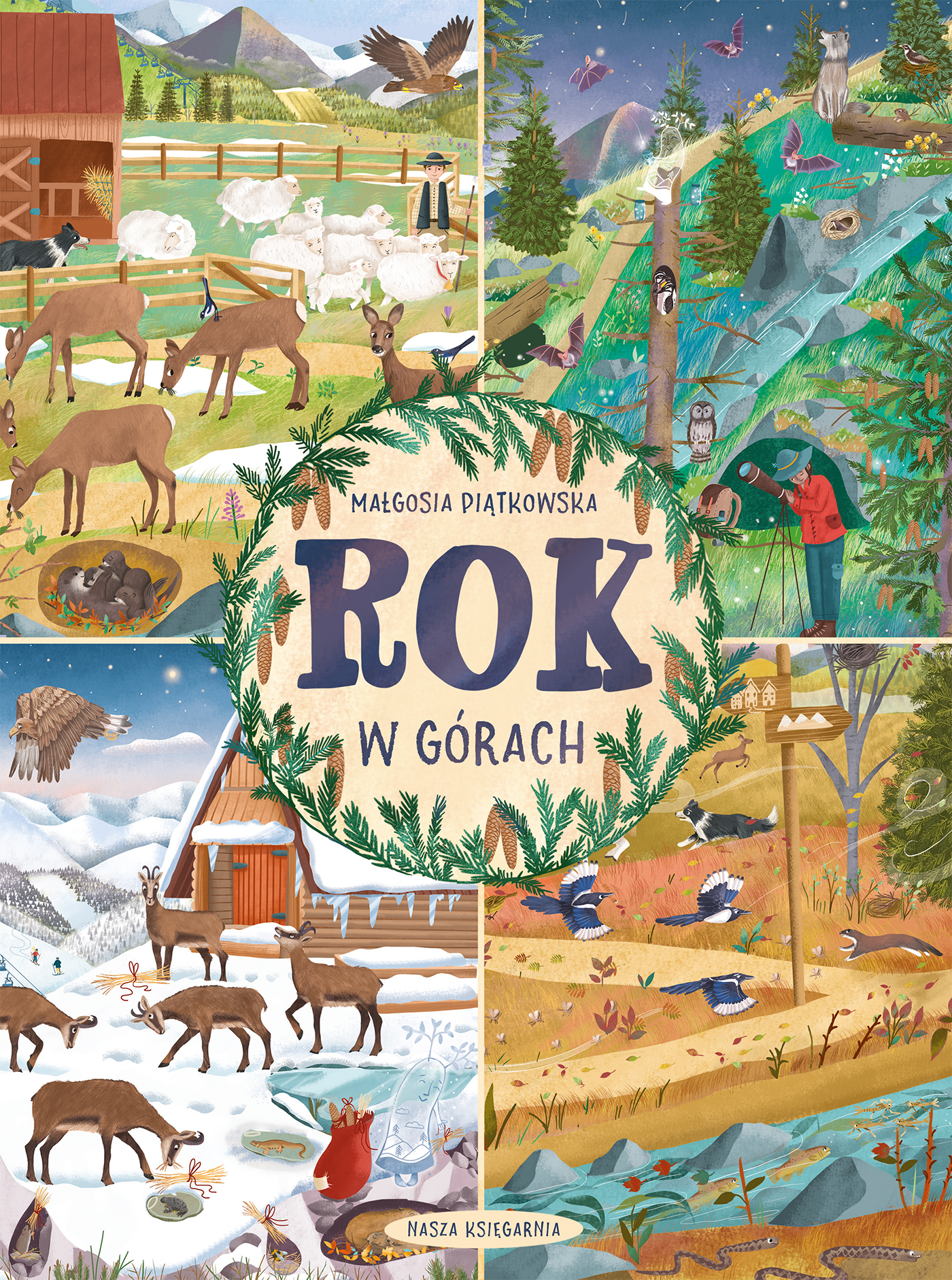 "Rok w górach" zawiera dwanaście rozkładówek pokazujących zmiany zachodzące w ciągu roku na różnych piętrach górskich - pogórzu, reglach, turniach i halach. Dzięki temu młody czytelnik pozna bogactwo flory i fauny gór. Dwie dodatkowe rozkładówki zawierają prezentację bohaterów oraz interaktywną zabawę. "Rok w górach" zapewnia rozrywkę na wiele godzin. Pobudza wyobraźnię, rozwija spostrzegawczość, zdolność logicznego myślenia, szukania związków przyczynowo-skutkowych i umiejętność opowiadania.