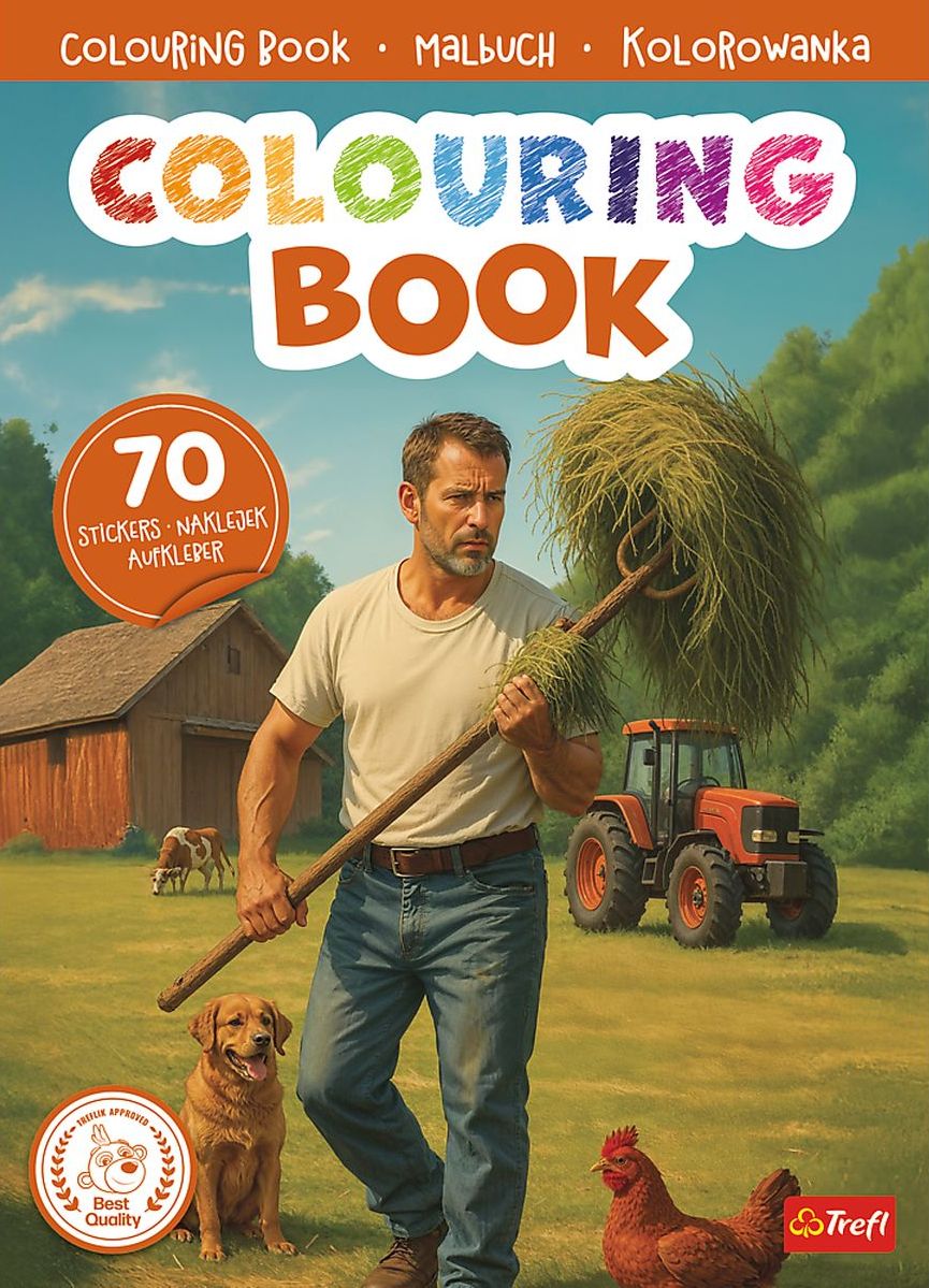 24-stronicowa kolorowanka ze scenkami z codziennej pracy rolnika na wsi. W środku aż 70 naklejek. .