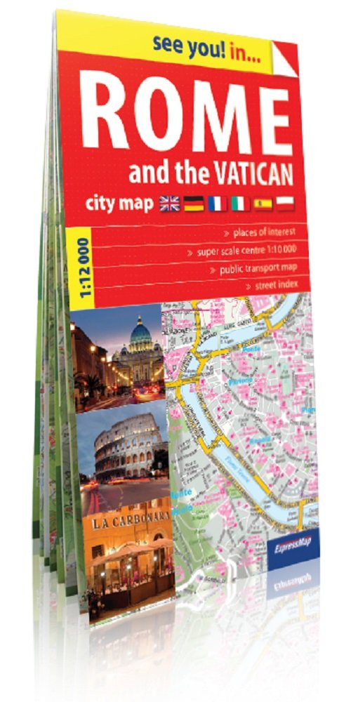 Zabytkowy Panteon, dostojna Bazylika św. Piotra czy słynna Fontanna di Trevi to tylko niektóre atrakcje Rzymu. Papierowy plan interesujących dla turysty, centralnych dzielnic Wiecznego Miasta pomoże odkryć uroki włoskiej stolicy. Na mapie m.in.: • bogata treść turystyczna, m.in.: zabytki, antyczne ruiny, muzea i inne istotne obiekty, • linie i stacje metra oraz kolejki podmiejskiej, linie i przystanki tramwajowe, • cieniowanie plastycznie pokazujące urozmaicone ukształtowanie terenu Wiecznego Miasta, • plan zabytkowego centrum Rzymu w bardziej szczegółowej skali 1:10 000 (1 cm – 100 m), • schemat metra, kolejki podmiejskiej i tramwajów • skorowidz ulic. Jakość w przystępnej cenie. Do tradycyjnych map papierowych dołączamy plastikowe etui, które chroni mapę przed wilgocią i uszkodzeniem. Seria obejmuje zarówno mapy samochodowe oraz plany miast, jak i mapy turystyczne.