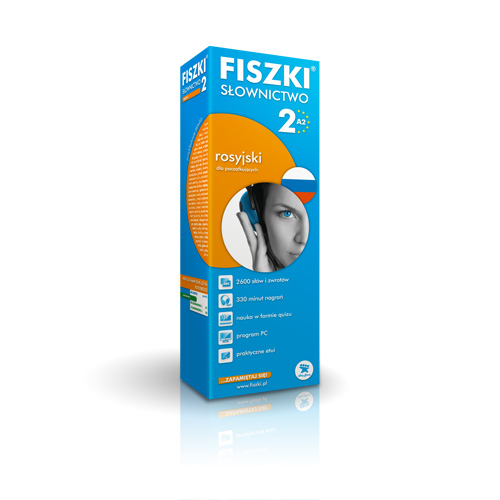 ""FISZKI - Słownictwo 2"" to druga część 2-poziomowego kursu. Dzięki niej szybko i skutecznie opanujesz ponad 2600 słów i zwrotów niezbędnych na poziomie niższym średnio zaawansowanym (ниже среднего). Polecamy osobom, które potrafią już zrozumieć pojedyncze zdania i często używane wyrażenia związane z życiem codziennym. Słownictwo zostało usystematyzowane w 50 kategoriach tematycznych, które wyczerpująco ujmują zjawiska związane z człowiekiem i jego otoczeniem. Hasła zaprezentowano na 1040 trwałych kartonikach, które zaprojektowano ze szczególną dbałością o prostotę i przejrzystość.