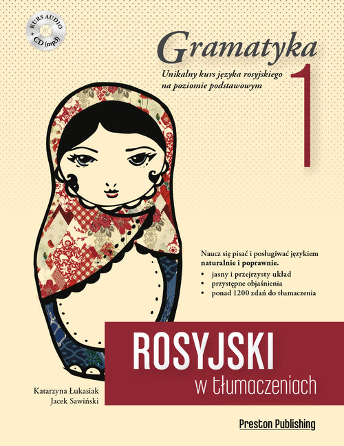 Chcesz w krótkim czasie opanować podstawy języka rosyjskiego i przełamać barierę mówienia? Swobodnie radzić sobie w sytuacjach komunikacyjnych z zachowaniem poprawności gramatycznej? Jeżeli tak, podręcznik ten jest doskonałym wyborem. Rosyjski w tłumaczeniach, gramatyka poziom 1 zawiera: naukę pisania cyrylicą oraz zaznaczone akcenty wyrazowe, dzięki którym nauczysz się pisać i posługiwać językiem poprawnie i naturalnie; setki zdań i wyrażeń przydatnych na co dzień, ułożonych według zagadnień gramatycznych, zgodnie ze stopniowaniem trudności, które logicznie łączą się ze sobą; czytelne wskazówki w języku polskim, ułatwiające zrozumienie zasad gramatycznych języka rosyjskiego; płytę CD (mp3) z ponad 6-godzinnym kursem audio, pomagającym w utrwaleniu przyswojonej wiedzy, ćwiczeniu wymowy i dobrego konstruowania zdań. To książka wymarzona dla samouków i wszystkich, którzy chcą sprawdzić swoje umiejętności językowe na poziomie podstawowym. Jest to też idealny suplement do regularnej nauki języka rosyjskiego. W prosty i jasny sposób przekazuje wiedzę na temat struktur gramatycznych i zachęca do ćwiczeń. Dzięki temu nauka języka rosyjskiego jest skuteczna i staje się czystą przyjemnością!