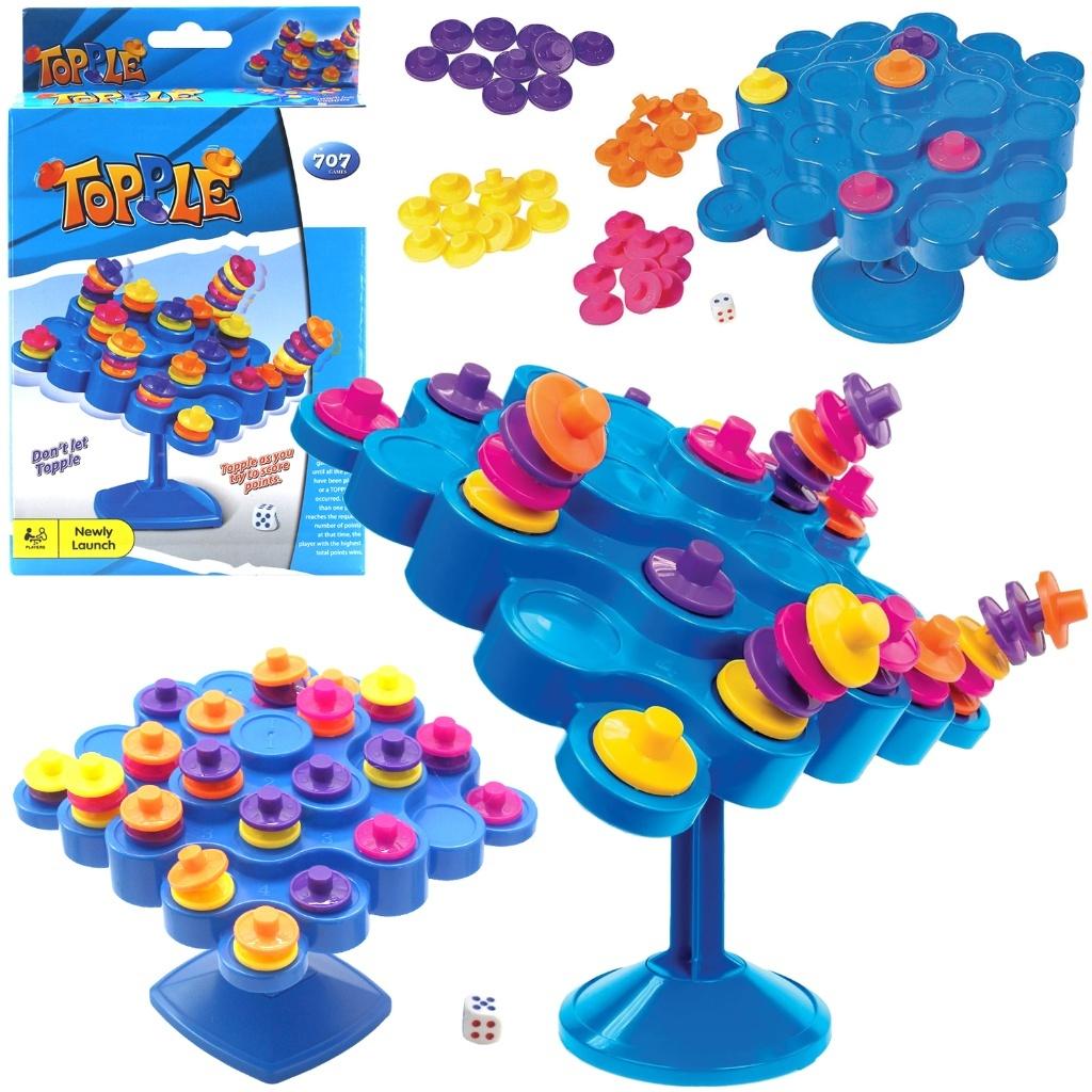 Topple - Gra Zręcznościowa "Równoważnia" - Sprawdź Swoją Zręczność i Refleks! Zabawa pełna emocji i wyzwań dla całej rodziny! Topple to wciągająca gra zręcznościowa, która dostarczy mnóstwo radości i emocji. Zadaniem graczy jest układanie kolorowych krążków na chwiejnej platformie, starając się utrzymać równowagę. Sprawdź swoją zręczność, refleks i umiejętność planowania, aby nie dopuścić do upadku konstrukcji! Zalety produktu: Rozwija zręczność i koordynację: Gra wymaga precyzji i delikatności, co pomaga w rozwijaniu zdolności manualnych. Uczy logicznego myślenia i planowania: Gracze muszą przewidywać ruchy i analizować sytuację, aby utrzymać równowagę. Emocjonująca rozgrywka: Każdy ruch może zmienić losy gry, co gwarantuje mnóstwo emocji i napięcia. Świetna zabawa dla całej rodziny: Idealna na rodzinne wieczory i spotkania z przyjaciółmi. Wysoka jakość wykonania: Elementy gry są solidne i trwałe. Kompaktowe opakowanie: Łatwe do przechowywania i zabrania w podróż. Zasady gry: 1. Ustaw chwiejną platformę na stabilnej powierzchni. 2. Gracze na zmianę rzucają kostką, która wskazuje, jaki kolor krążka należy dołożyć. 3. Delikatnie układaj krążki na platformie, starając się utrzymać równowagę. 4. Gracz, który doprowadzi do upadku konstrukcji, przegrywa. Specyfikacja: Wiek: 3+ Liczba graczy: 2+ Zawartość zestawu: Chwiejna platforma, kolorowe krążki, kostka do gry Materiał: Tworzywo sztuczne Wymiary opakowania: 24x15x5cm Zestaw "Topple - Równoważnia" to doskonały pomysł na prezent dla każdego, kto lubi wesołą i emocjonującą zabawę!