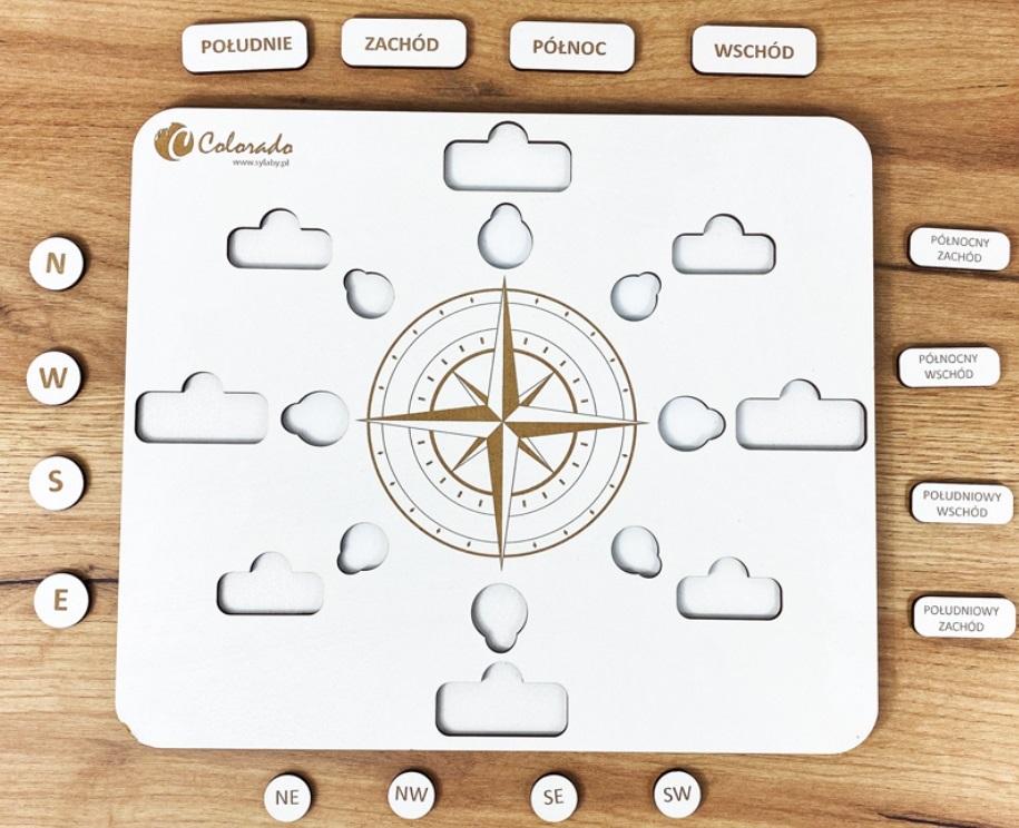 Dzięki tablicy dziecko poznaje kierunki geograficzne główne i pośrednie.