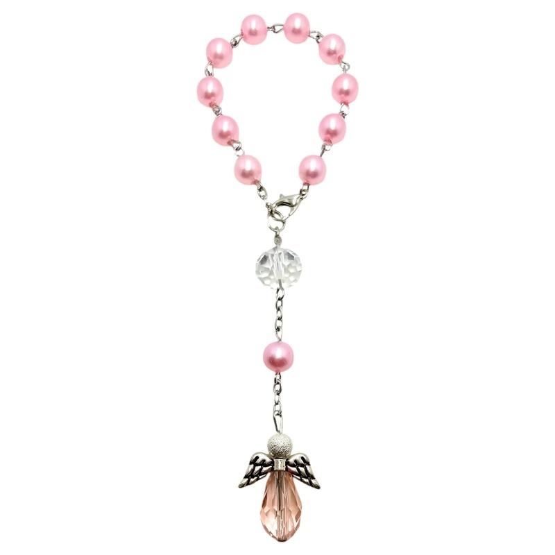 Różowa Dziesiątka Różańca z Aniołkiem na Łańcuszku.