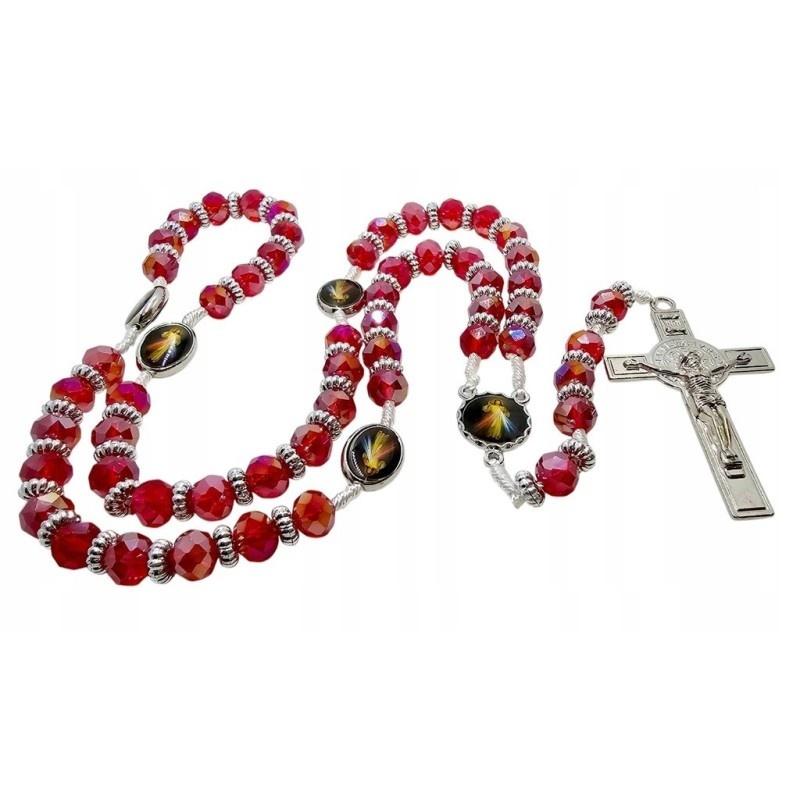 Czerwony Kryształowy Różaniec Jezu Ufam Tobie.