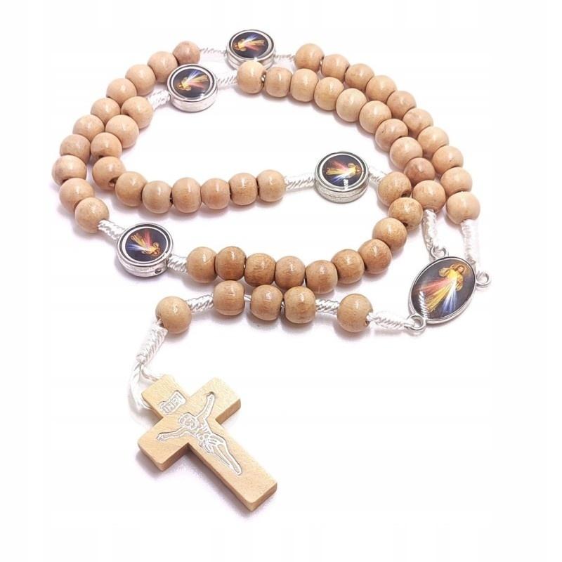Różaniec drewniany beżowy - Jezu ufam Tobie