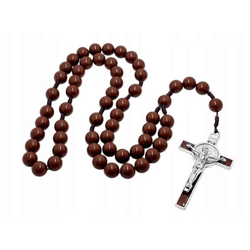Odkryj prostotę i siłę modlitwy z naszym brązowym różańcem. Ten pokaźny różaniec wykonany jest z plastiku, ma duże koraliki i piękny metalowy krzyż św. Benedykta w kolorze brązowym. Całość wykonana jest na brązowym sznurku.Różaniec ten jest idealny do modlitwy w zaciszu domowym.