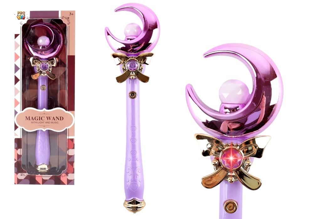 Ta piękna, bajkowa różdżka z księżycowym kryształem to idealny dodatek dla każdej małej księżniczki lub czarodzieja. Wykonana z wysokiej jakości materiałów, różdżka posiada unikalny design ozdobiony błyszczącymi elementami, która świeci po naciśnięciu przycisku.