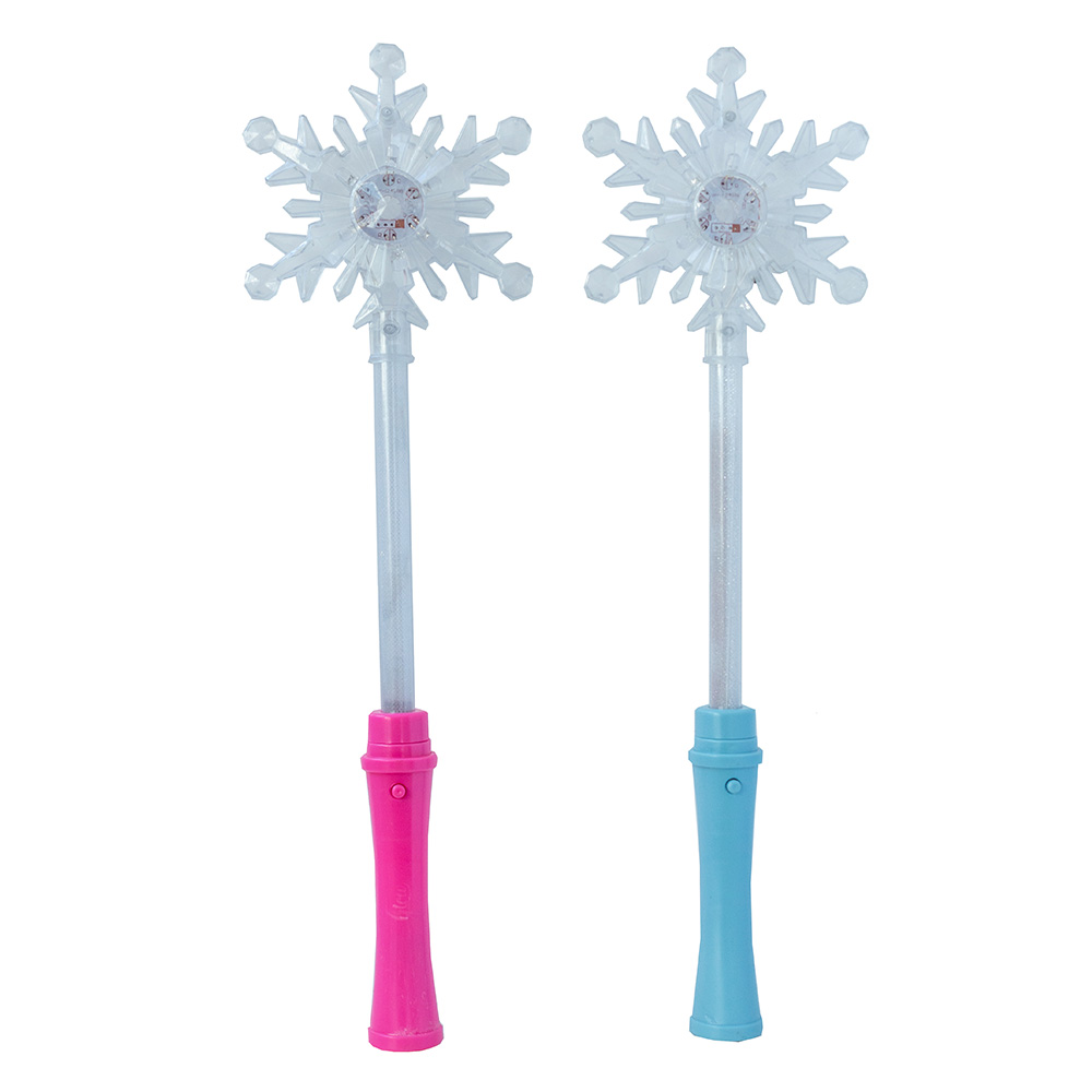 Świecąca różdżka o długosci 39 cm z płatkiem śniegu. Zabawka zasilana 4 bateriami AG13, dołączone.