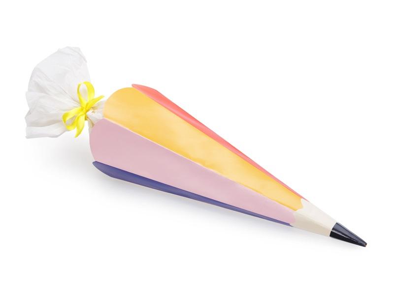 Rożek na słodycze Kredka, mix kolorów, zestaw zawiera 1 rożek i tasiemkę. Rożek po złożeniu 14x39,7x12,5 cm
