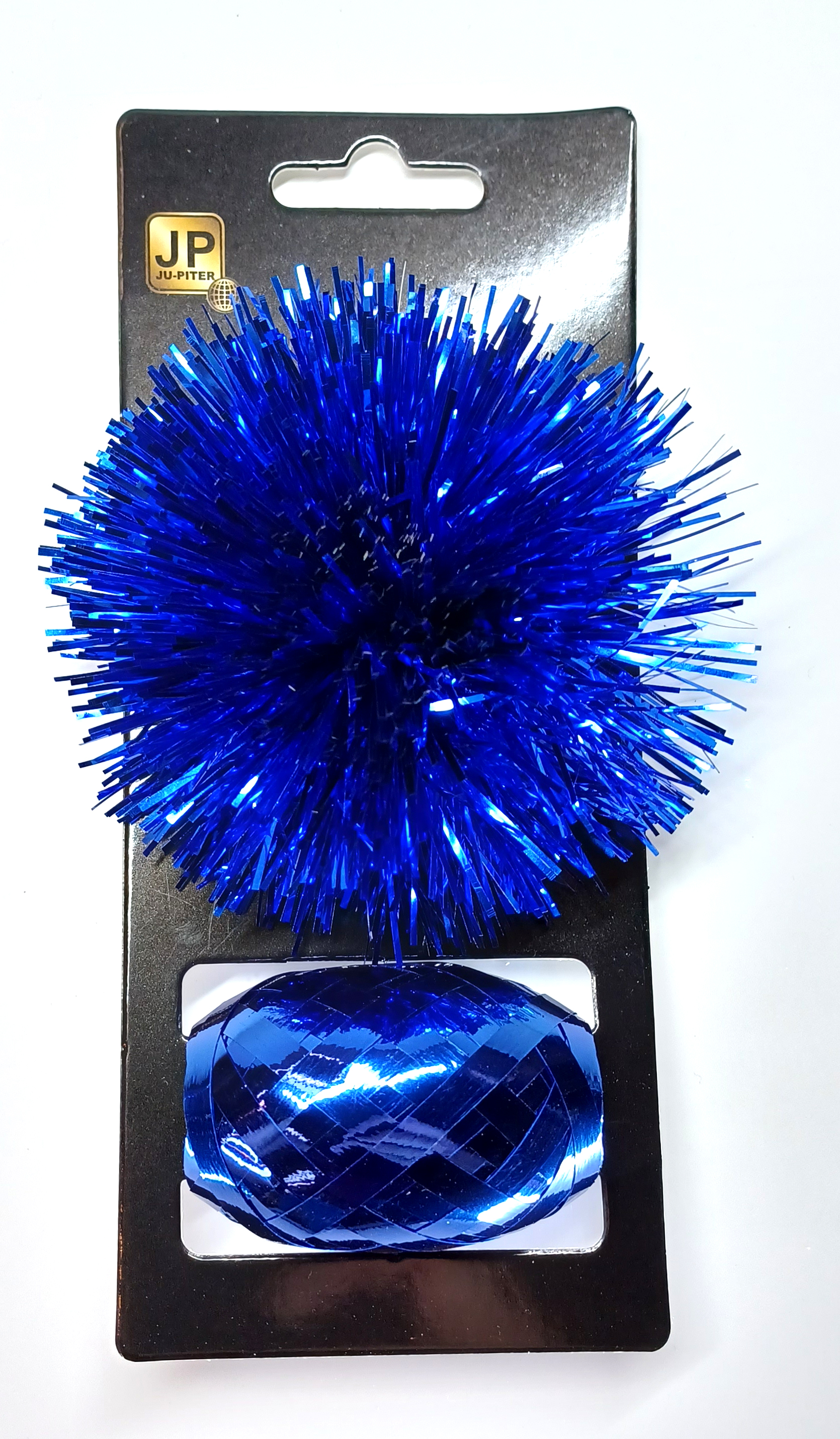 Znajdziesz w nim samoprzylepną rozetkę pompon , wstążkę nawiniętą na motek.
