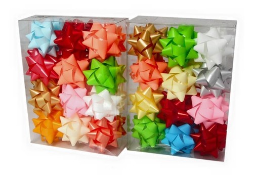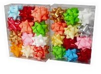 Zestaw 36 kolorowych rozetek o średnicy 8 cm, wykonanych z matowej wstążki.