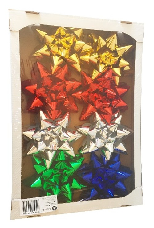 Zestaw ośmiu dużych kolorowych rozet o średnicy 21 cm.