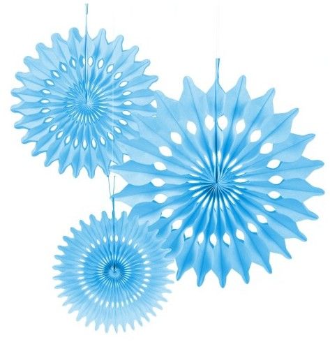 Papierowe rozety dekoracyjne, 3 sztuki w opakowaniu .Rozmiary: 1 x 14 cm, 1 x 20 cm, 1 x 30 cm .Kolor niebieski.rodukt posiada certyfikat FSC, co oznacza że surowiec zastosowany do jego wytworzenia pochodzi z materiałów pozyskanych legalnie, odpowiedzialnie i bez uszczerbku dla środowiska oraz lokalnych społecznośc