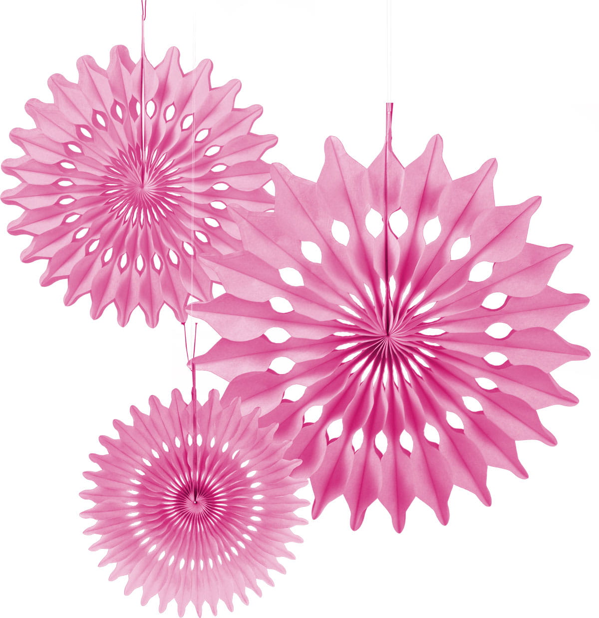 Papierowe rozety dekoracyjne, 3 sztuki w opakowaniu . Rozmiary: 1 x 14 cm, 1 x 20 cm, 1 x 30 cm . Kolor różowy. Produkt posiada certyfikat FSC, co oznacza że surowiec zastosowany do jego wytworzenia pochodzi z materiałów pozyskanych legalnie, odpowiedzialn