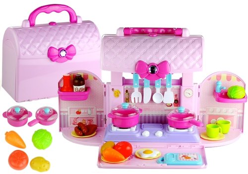 Rozkładana kuchnia z palnikami i akcesoriami w walizce Prowadzenie własnego gospodarstwa domowego jest nieustannie jedną z ulubionych zabaw kilkulatków. Ta przyjemna czynność sprawia, że dziecko może nauczyć się wielu istotnych w przyszłości rzeczy — samodzielne przygotowanie kanapki nie będzie dla niego ciężkim zadaniem. Jeśli podczas wyboru zabawkowej kuchni kierujecie się Państwo takimi czynnikami jak mnogość elementów, efekty świetlne lub dźwiękowe, a także wysoka jakość wykonania, przedstawiamy idealny model. Decydując się na kuchnię zamkniętą w walizeczce można mieć pewność, że każdy mały miłośnik zabawy w gotowanie będzie uradowany. Zestaw kuchenny składa się z: - rozkładanej walizeczki, - zestawu naklejek, - kranu, - podwójnego palnika, - garnka z pokrywką, - patelni z pokrywką, - sztućców, - wieszaczków i półeczek, - talerzyków, - deski do krojenia, - kubków, - artykułów spożywczych: ziemniaka, pomidora, kapusty, marchewki, jajka sadzonego, steku, kiełbasek, ketchupu, mleka i kawy. Kuchnia dla kilkulatki ukryta jest w bardzo dziewczęcej, różowej walizeczce. Już z zewnątrz rewelacyjnie się prezentuje — połączona jest z ciemnoróżową rączką i połyskującą kokardką z diamentem. By ją rozłożyć, wystarcz wcisnąć guziczek umieszczony w górnej części zabawki — walizka rozłoży się w mgnieniu oka, czemu będą towarzyszyć ciekawe efekty świetlne i dźwiękowe. Po rozłożeniu zabawki dziecko może ozdobić jej wewnętrzne ścianki, korzystając z dołączonych do zestawu naklejek. Składanie zabawki po zakończonej zabawie jest równie proste — po wyciągnięciu akcesoriów należy złożyć boczne ścianki do środka, a następnie dołączyć do nich frontową ściankę — by domknąć walizkę, należy tylko delikatnie opuścić pokrywę, aż do usłyszenia kliknięcia. Ogromnym atutem zabawki jest możliwość szybkiego składania i rozkładania, dzięki czemu zabawka zajmuje bardzo małą powierzchnię. Wszelkie akcesoria, wchodzące w skład jej zestawu, posiadają bezpieczny kształt, który naśladuje wygląd elementów znanych dzieciom z kuchni. Talerzyki, sztućce i pozostałe dodatki posiadają przyciągającą wzrok kolorystykę, stymulującą wzrok kilkulatek, natomiast ich wymiary i waga są dostosowane do rączek małych dzieci, dzięki czemu zabawa będzie bardzo komfortowa i przyjemna. Kolejnym, dużym atutem zestawu są elementy świetlne i dźwiękowe, towarzyszące zabawie — światełko ukryte jest zarówno w wewnętrznej stronie daszku, jak i na palnikach. Rozkładana kuchnia z akcesoriami przeznaczona jest dla wszystkich dziewczynek powyżej 3. roku życia. Posiada certyfikat CE, będący gwarancją spełnienia wymogów Unii Europejskiej, ponadto produkcja zabawki jest zgodna z normą EN 71. Walizeczka zapakowana jest w dziewczęce, kolorowe opakowanie z przeźroczystą witrynką. Estetyka zestawu z pewnością sprawi, że zabawka spodoba się każdej dziewczynce już na pierwszy rzut oka. Wymiary elementów zestawu: - złożona walizeczka: 29,5 cm x 34,5 cm x 52,5 cm, - rozłożona kuchnia: 53 cm x 29 cm x 32 cm, - palnik: 26 cm x 9 cm, - garnek: 10 cm x 5,5 cm, - nożyk: 9,5 cm x 2 cm, - kiełbaska: 5,5 cm x 1 cm. Wymiary opakowania: - 48 cm x 32 cm x 16,5 cm.