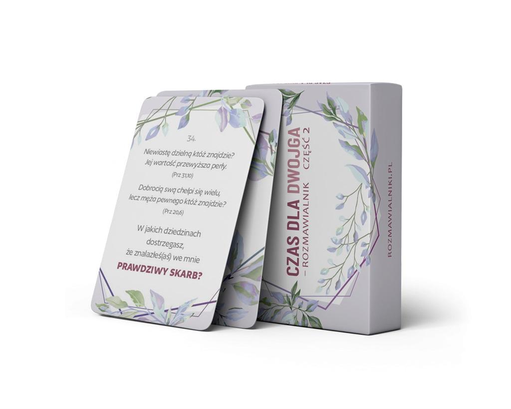 CZAS DLA DWOJGA - ROZMAWIALNIK, CZ.2 to nowy zestaw pytań po części 1, które pomogą pogłębić relację małżeńską lub narzeczeńską. Rozmawialnik to kieszonkowe pudełko z 40 kartami z pytaniami, które mają pobudzić do głębszych rozmów, wyrażających prawdziwe zainteresowanie drugim człowiekiem. Już od kilku lat zauważamy, że relacje przeniosły się w dużej mierze ze świata realnego do wirtualnego. Czas pandemii jeszcze bardziej to pogłębił. Każdy człowiek został stworzony do relacji - jest to mu niezbędne do zachowania zdrowia fizycznego, psychicznego i życia w pełni. A relacje żyją rozmową. Nasza akcja jest odpowiedzią na te wyzwania. ROZMAWIALNIK W PRAKTYCE, czyli jak możesz z tego korzystać? > Jesteś żoną/mężem? Wyobraź sobie miłą randkę, na którą do kieszeni zabierzecie "Czas dla Dwojga - Rozmawialnik", by ten cenny czas sam-na-sam spędzić nie na omawianiu spraw bieżących, ale na głębokich rozmowach i jeszcze lepiej zrozumieć współmałżonka. Dodatkowe informacje Wymiary pudełka: 10.5cm x 7.5cm x 2cm Pudełko ze sztywnej tektury 40 kart w pełnym kolorze Przyjemne w dotyku wykończenie soft-touch Instrukcja Zestaw kart zafoliowany ISBN: 978-83-66681-51-4 EAN: 9788366681514 Cena okładkowa: 54.99zł Wydawca: Psalm18.pl oraz Fundacja Żyj Pełnią Życia (zyjpelnia.org) Informacje o wydanych typach na www.rozmawialniki.pl