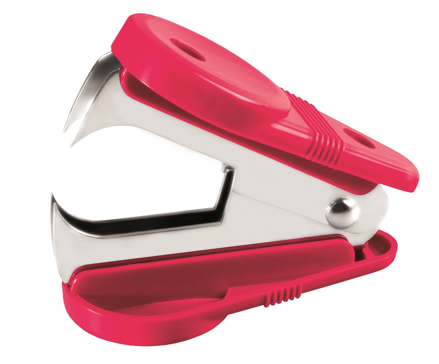 Rozszywacz w obudowie z tworzywa sztucznego, części mechaniczne metalowe. Kolor czerwony. Dostosowany do zszywek: 10, 24/6 ,24/8, 26/6, 26/8.