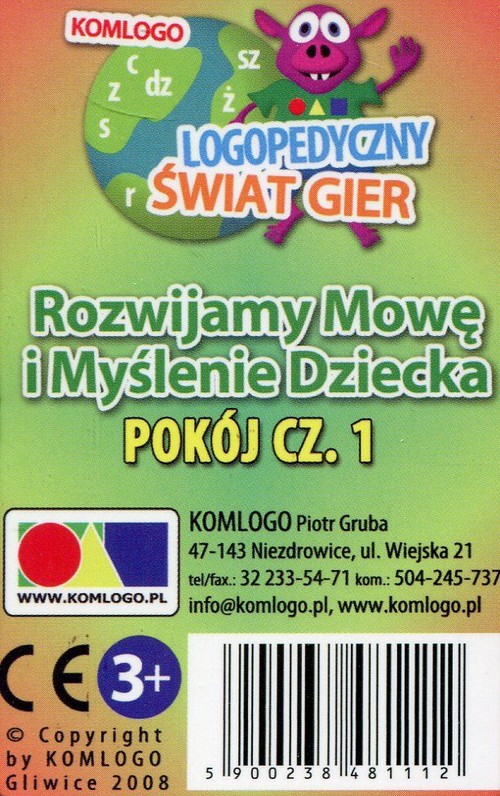 Karty Rozwijamy mowę i myślenie dziecka to kolejna gra typu Memory i Piotruś z zestawem innych zabaw i ćwiczeń dla dzieci. Gra zawiera 24 talie, które są posegregowane tematycznie w trzech zestawach. W każdej talii znajduje się 13 par obrazków (i 1 para Piotrusia), które różnią się pomiędzy sobą co najmniej jednym szczegółem. Wszystkie talie zawierają 312 par obrazków.Oprócz znanych gier typu ""Piotruś"" i ""Memory"" proponujemy Państwu zestaw zabaw i ćwiczeń rozwijających myślenie i język dziecka. Znajdują się tu zabawy dla dzieci najmłodszych i ćwiczenia językowe dla dzieci starszych oraz ćwiczenia usprawniające dla dzieci z problemami w zakresie różnych funkcji.