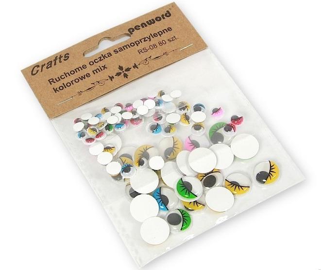 Ruchome oczka samoprzylepne kolorowe mix 80szt