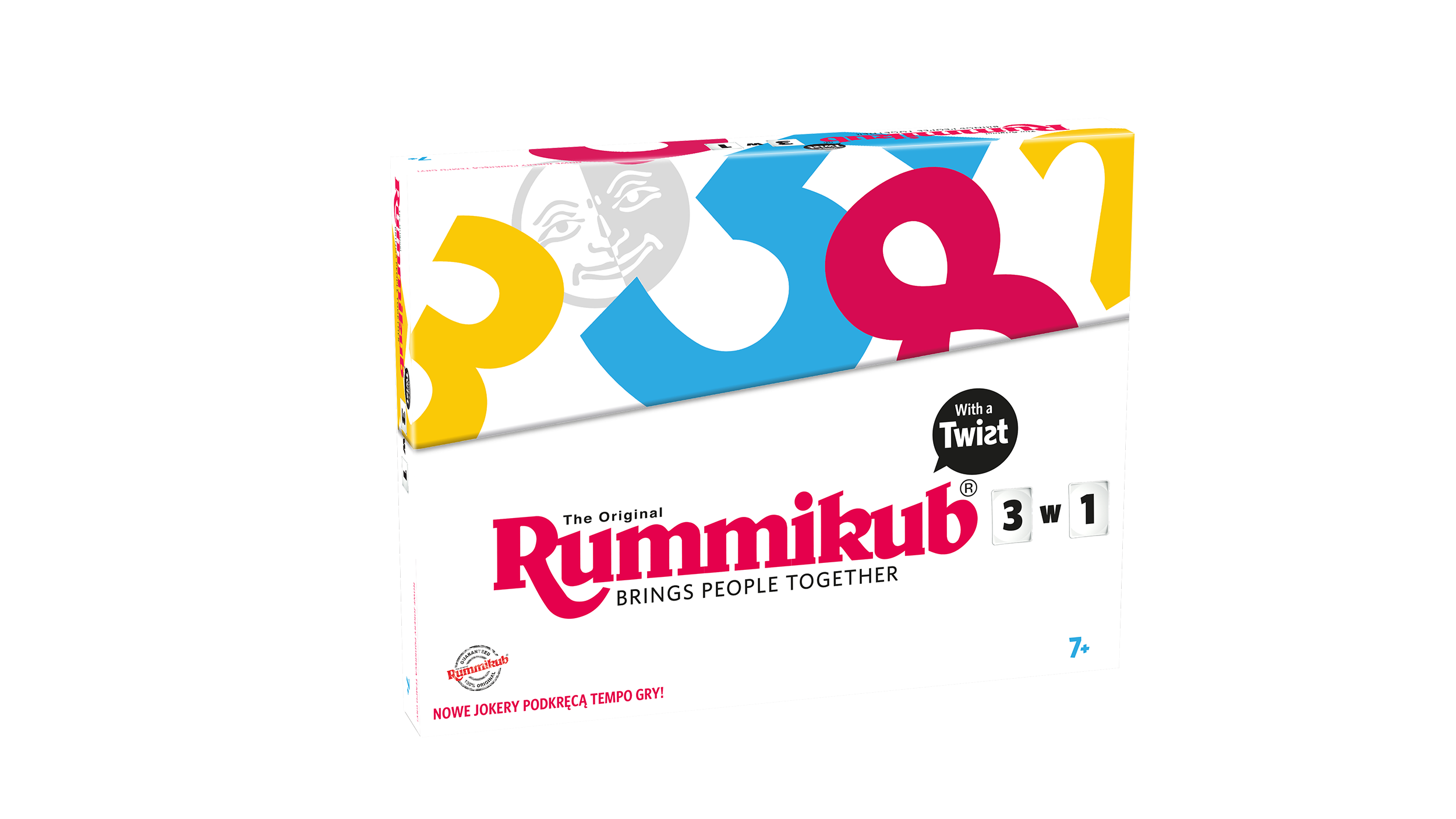Rummikub Twist 3w1 to wspaniała gra towarzyska. Prosta, wciągająca, inna w każdej rozgrywce. Doskonała rozrywka dla całej rodziny. Celem gry jest pozbycie się wszystkich kostek z liczbami ze swojej tabliczki. Gracz, który dokona tego jako pierwszy- wygrywa. Polska edycja Rummikub Twist 3w1 zawiera 3 wersje gry: Standard (z 2 Jokerami), Twist (z 8 specjalnymi Jokerami) oraz Expert (z 8 kolorowymi Jokerami). Wiek graczy: 7+ Liczba graczy: 2-4 Czas rozgrywki: 20 minut