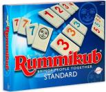 Rummikub to jedna z najpopularniejszych gier na świecie. Ma wszystkie elementy, które sprawiają, że jest niesamowita: • posiada proste zasady • rozgrywka jest szybka, • każda gra jest inna, • łączy w sobie element szczęścia i strategii, Rummikub jest grą od 2 do 4 graczy, dla osób w wieku powyżej 7 roku życia. Autorem jest Ephraim Hertzano, który wydał ją po raz pierwszy w Izraelu w 1950 roku. Gra zdobyła wiele nagród między innymi w: • 1977 roku w USA – za najlepiej sprzedająca się grę • w 1980 roku w Niemczech • w 1983 roku w Holandii • w 1990 roku w Hiszpanii • w 1993 roku w Polsce W grze używa się 104 kości z liczbami, w czterech kolorach o wartościach od 1 do 13 oraz 2 kości z symbolami jokerów. Każdy kolor czarny, czerwony, pomarańczowy i niebieski występuje w 2 zestawach. Do rozgrywki gracze używają specjalnych stojaków (tabliczek), które pozwalają rozłożyć wylosowane kostki. Celem gry jest bycie pierwszym graczem, który wyłoży na stół wszystkie kostki ze swojej tabliczki. Do wyłożenia gracz potrzebuje 30 pkt. W grze obowiązuje limit czasu 60 sekund na każdy ruch. Mottem gry jest: Rummikub to wspaniała gra towarzyska. Prosta, wciągająca, inna w każdej kolejnej rozgrywce. Jest doskonałą grą dla całej rodziny. Produkt posiada Certyfikat Jakości i Bezpieczeństwa CE.