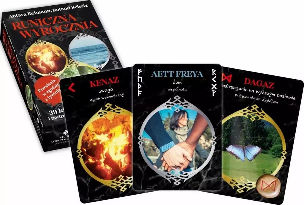 Runy nordyckie to specjalny zbiór magicznych symboli. Znaczenie i odczytywanie run odbywa się w logicznym i nieprzypadkowym ułożeniu. Runa Fehu występująca na początku, to obfitość materialna i bogactwo. Jej żywiołem jest ogień. Z kolei Othal symbolizuje dom i rodzinę, a jej żywiołem jest ziemia. W wybraniu odpowiadającej karty runicznej pomocne będą przede wszystkim ilustracje. Każda grafika związana jest z unikalnym znaczeniem runy i żywiołu. Na szczególną uwagę zasługują karty z żywiołami oraz karty specjalne Aettir, czyli rodziny runiczne. Aett Freya odpowiada za moce życia codziennego, Aett Odyna mówi o siłach natury, z kolei Aett Tyra symbolizuje człowieka w swoim rozwoju. Dzięki temu zestawowi kart praca z runami będzie bardziej efektowna. Pozwolą ci przewidzieć zdarzenia, które będą miały niebagatelny wpływ na twoje życie. Runy i żywioły to dopiero początek twojej drogi do poznania siebie.