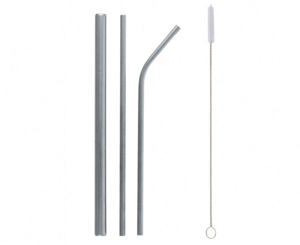 "METALOWE SŁOMKI DO PICIA, SREBRNE + SZCZOTECZKA Długość: 21,5 cm Średnica: 0,5 cm i 1 cm (słomka "shake") Kolor: srebrne Ilość sztuk w opakowaniu: 1 słomka shake, 1 słomka prosta, 1 słomka zagięta, 1 szczoteczka do czyszczenia Materiał: stal nierdzewna Producent: Godan S.A. "