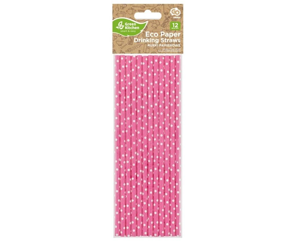 SŁOMKI PAPIEROWE RÓŻOWE W BIAŁE GROSZKI