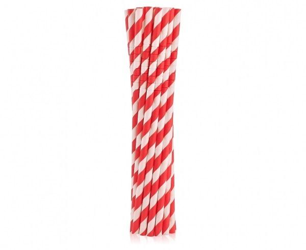 Rurki słomki pap. łamane czerwone paski 20cm 12szt
