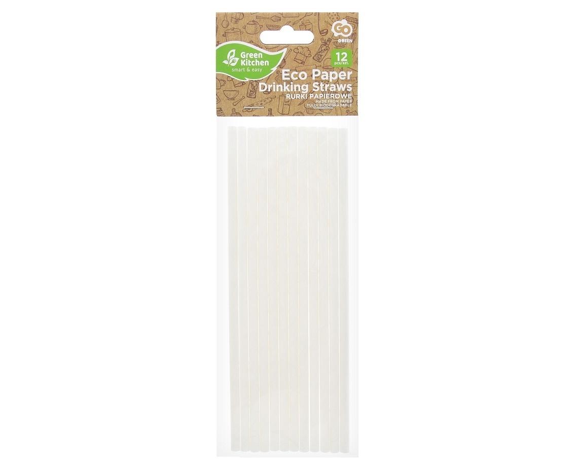Opakowanie Rurki słomki papierowe białe, 6x197mm 12szt