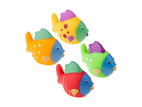 Niezwykle kolorowe rybki sprawiają, że kąpiel staje się niezapomnianą przygodą. Wanna pełna zabawek to kolejna okazja do ciekawej zabawy.