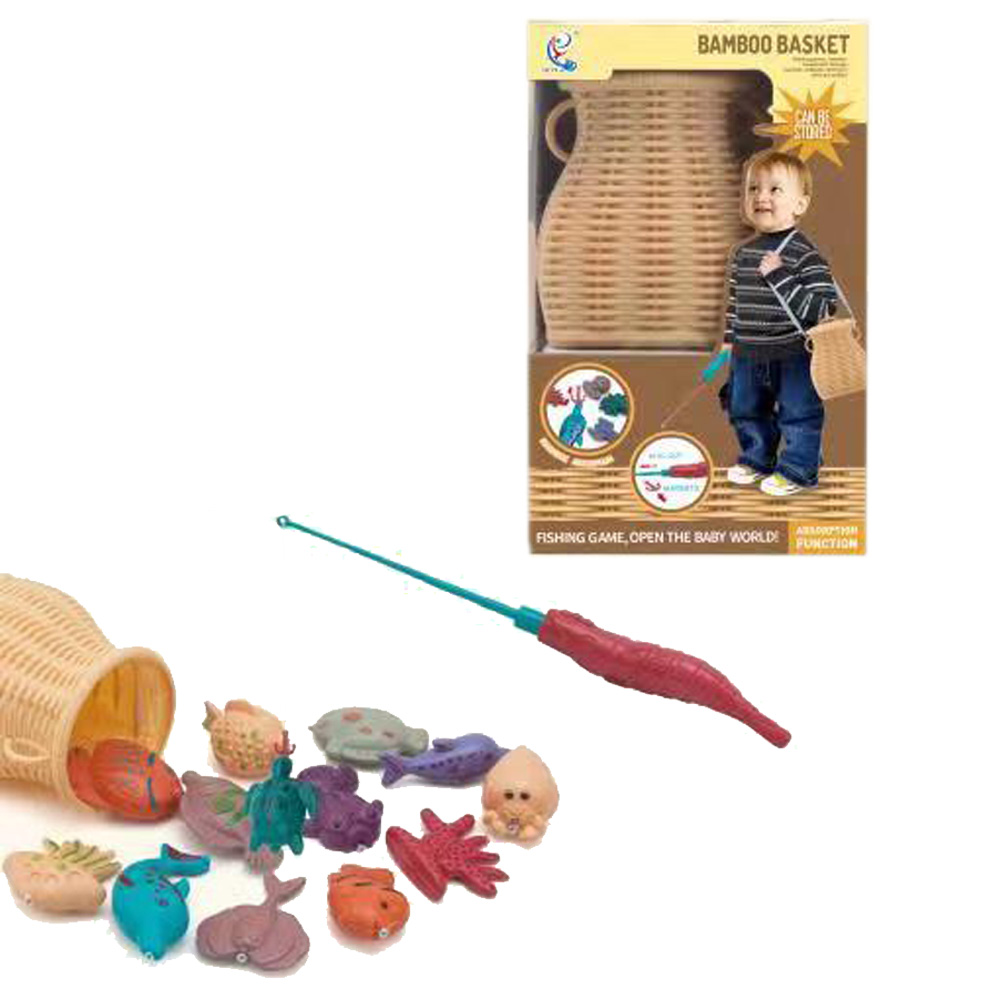Wędka do łowienia rybek na magnes. W zestawie koszyk bambusowy.