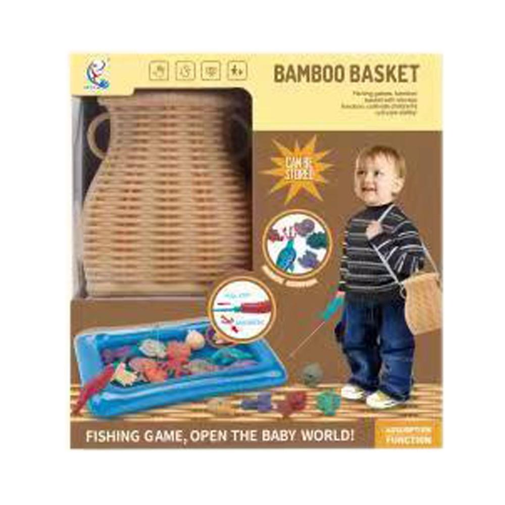 Wędka do łowienia rybek na magnes. W zestawie koszyk bambusowy oraz dmuchany basenik na rybki. Wymiary opakowania: 22.5 x 9,5 x 24 cm.