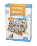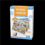 KARTY PRZYGODOWE DLA DZIECI Rycerze i Rabusie to idealny sposób na rozwój wyobraźni i kreatywności małego dziecka. Stanowią doskonała metodę nauki logicznego myślenia oraz stymulacji rozwoju percepcyjnego. Rycerze i Rabusie to zestaw 13 dużych baśniowych kart z instrukcja oraz 30 mniejszych okrągłych kart z przedmiotami do odszukania. Karty przygodowe to zabawa, relaks i nauka w jednym, na dodatek w barwnej, podsycającej ciekawość szacie graficznej. Rekomendowane przez psychologów od 3 roku życia do wesołej, rodzinnej zabawy. Największy, pozytywny wpływ na rozwój dziecka ma ten rodzic, który spędza ze swoim maluchem czas na wspólnej zabawie, na odkrywaniu świata. Stymulują i rozwijają percepcję najmłodszych Uruchamiają ich zdolności poznawcze (np. poprzez wyszukiwanie części z całości) Usprawniają myślenie logiczne. To zabawa, relaks i nauka w jednym.