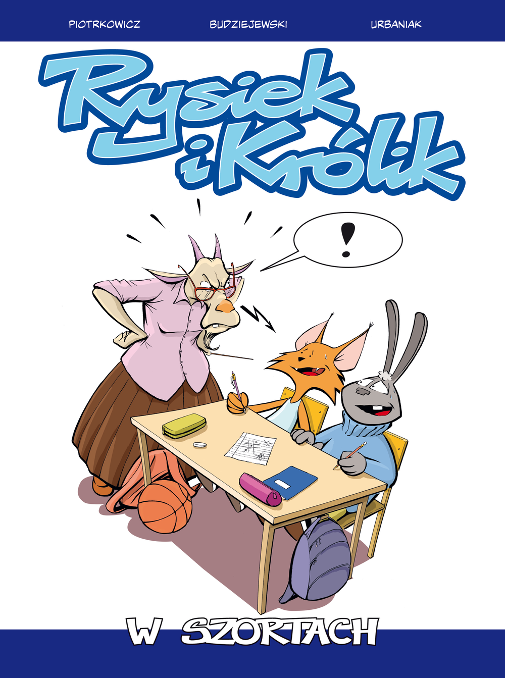 Rysiek jest chłopcem energicznym, pełnym optymizmu, uwielbia grę w kosza i ma szczególny talent do wpadania w kłopoty. Królik jest dla odmiany spokojny, a chwilami nawet zmienia się w gburowatego pesymistę. Pasjonuje się poezją, choć potrafi również godzinami przesiadywać przed komputerem. Album W szortach zawiera pięć krótkich opowieści o Ryśku i Króliku, w których chłopcy zmierzą się z okropnymi porywaczami poezji, spróbują swoich sił jako grafficiarze, zostaną wessani przez Internet, zagrają turniej z pająkiem, a do tego wszystkiego poznają smak pierwszej miłości! Komiks nagrodzony w pierwszej edycji konkursu im. Janusza Christy na komiks dla dzieci.