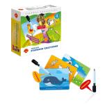 Super zabawa, a w niej: - rysowanie - myślenie i kojarzenie - spostrzegawczość - ćwiczenie zręczności. Zawartość pudełka: 28 plansz na 14 tablicach pisak z końcówką do ścierania instrukcja. Dla dzieci powyżej lat 4.