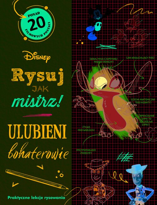 RYSUJ JAK MISTRZ! Złap za ołówek i naucz się rysować swoje ukochane postacie z filmów jak najprawdziwszy artysta Disneya! Czytelne, proste instrukcje i liczne podpowiedzi – to wszystko, czego trzeba początkującym twórcom, by nakreślić i pokolorować ponad dwudziestu bohaterów ze świata animacji Disneya. Obudź w sobie mistrza ołówka i pędzla i zapełnij swój szkicownik tak wyjątkowymi bohaterami, jak Myszka Miki, Kubuś Puchatek, Simba czy Vaiana.