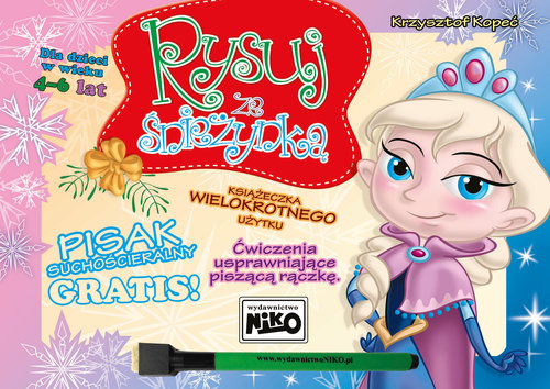 RYSUJ ZE ŚNIEŻYNKĄ Jest to książeczka przeznaczona dla dzieci w wieku 4 - 6 lat. Rozpoczynając naukę w szkole dziecko musi sprostać trudnej sztuce pisania. Co zatem zrobić, żeby literki były pisane starannie i mieściły się w liniaturze? Oczywiście zachęcić dziecko do ćwiczeń grafomotorycznych. Podstawowym rodzajem takich ćwiczeń są szlaczki. Jednak pisanie jednakowych wzorów jest dla małego dziecka formą mało atrakcyjną, a nawet nużącą. Zdecydowanie ciekawsze będą ćwiczenia w rysowaniu po śladzie, zwłaszcza, że proponowane rysunki są zabawne i pełne humoru. Dzięki laminowanym stronom i pisakowi maluch może wykonać każde zadanie wielokrotnie. PISAK SUCHOŚCIERALNY GRATIS !