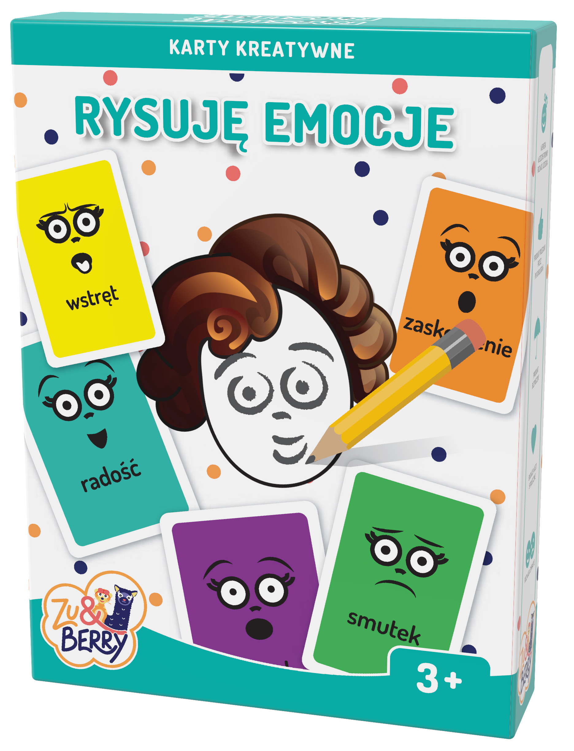 PROSTY SPOSÓB NA OSWOJENIE NAJMŁODSZYCH Z EMOCJAMI Zestaw 16 kart z konturami twarzy do rysowania w nich różnych emocji. Flamaster suchościeralny pozwala na wielokrotną zabawę, a karty przedstawiające uczucia służą pomocą małym rysownikom. Karty kształtują wrażliwość na emocje innych osób, rozwijają empatię i inteligencję emocjonalną. Gra polecana przez psychologów rodzicom, wychowawcom i terapeutom do pracy z dziećmi już od 3. roku życia.